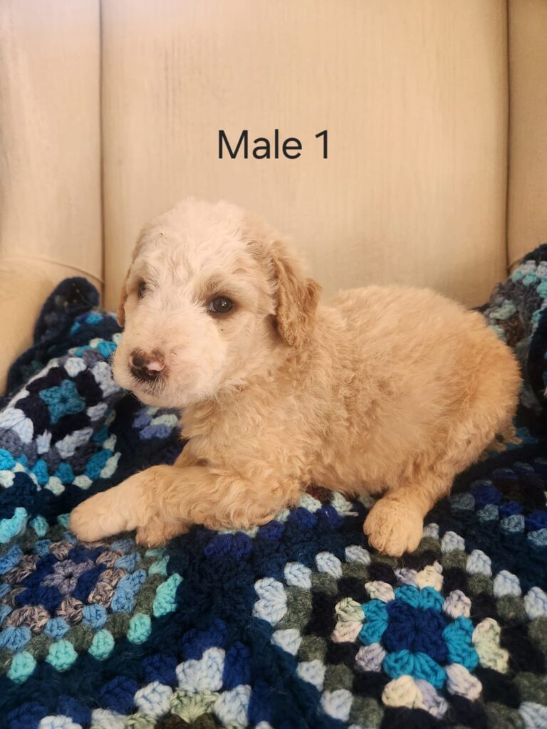 Jamasson is the dad. He is CKC registered, very athletic and intelligent. He is cream coloured. He has sired numerous litters; all of his pups have been healthy and are bringing a lot of joy to their new families.