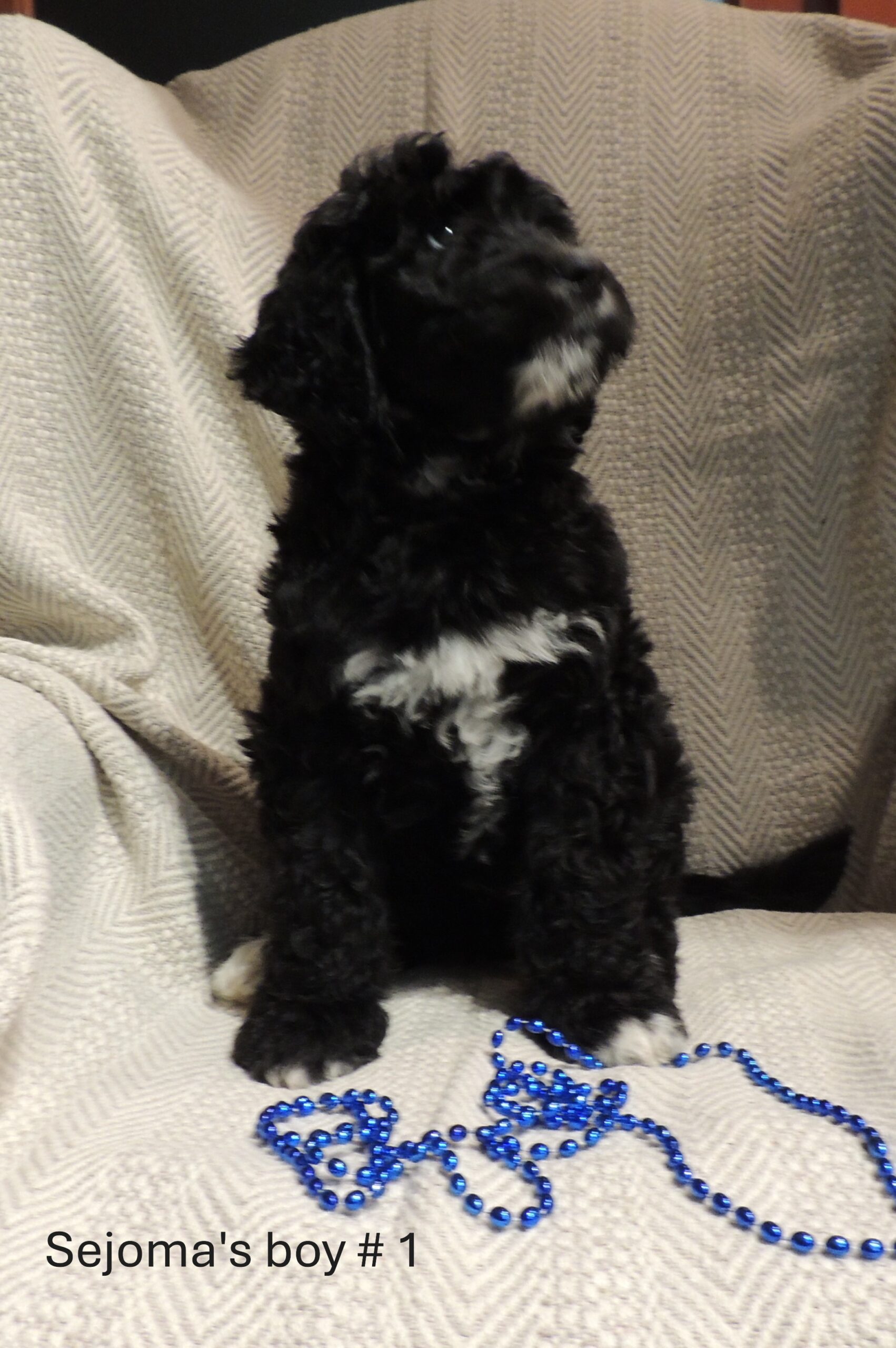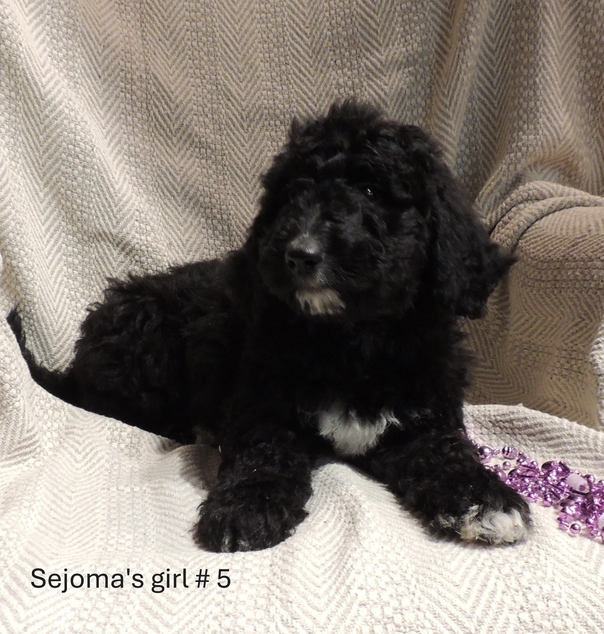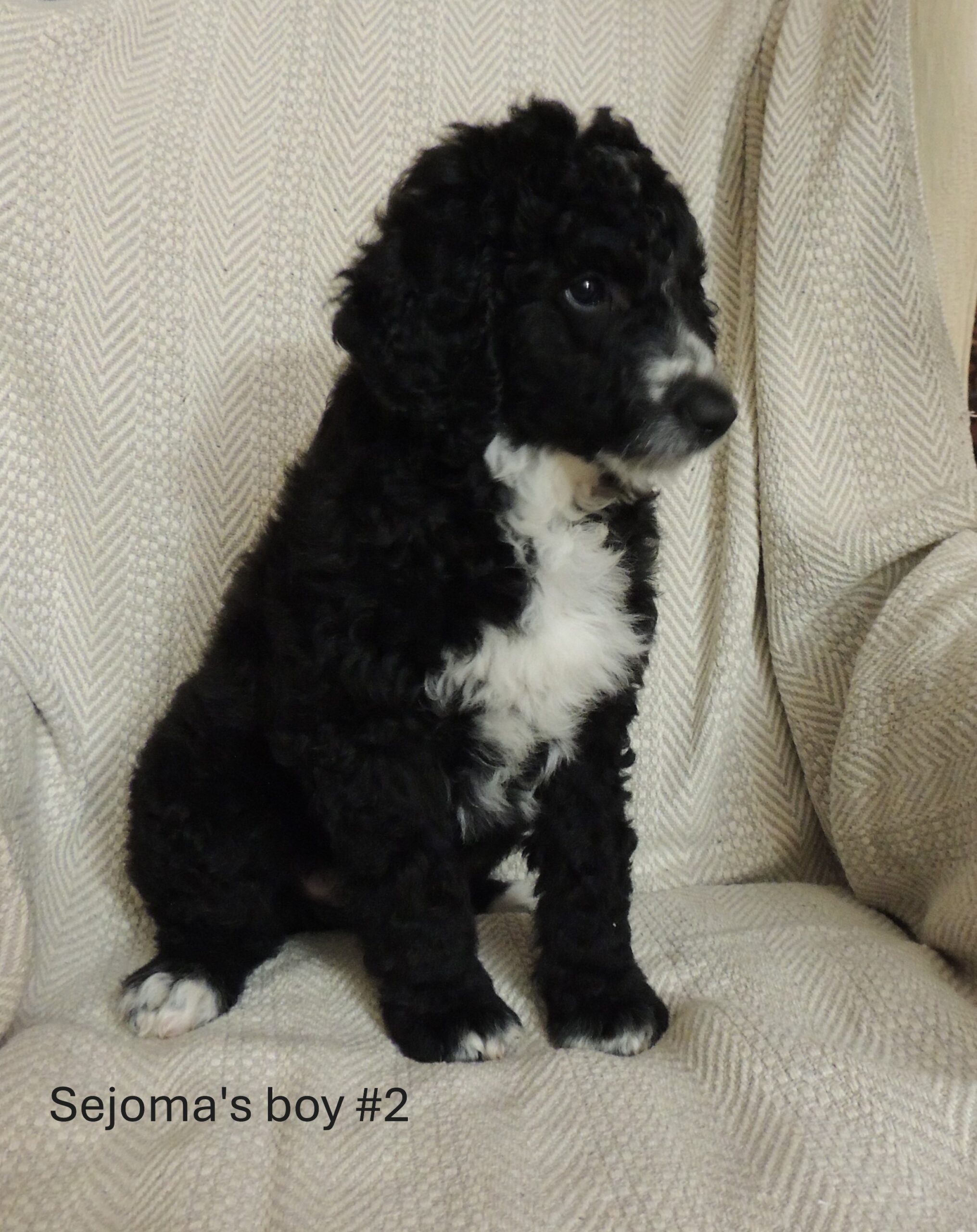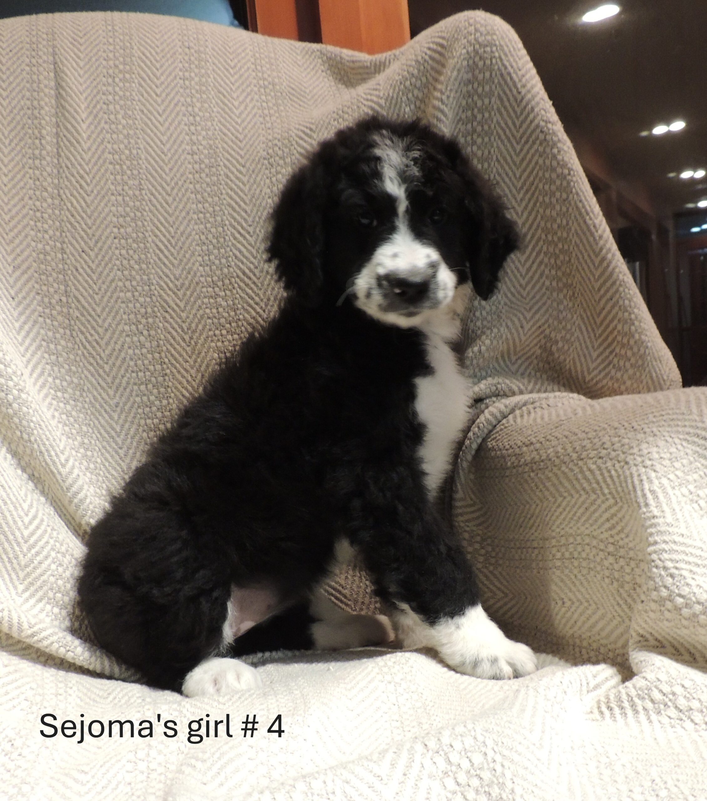 Our Bernedoodle girl Sejoma has seven beautiful pups ready for rehoming in second week of October 2025. Born 6th August 2025 there are five girls and two boys. Sejoma is an F1 Bernedoodle, very affectionate and a great mom. We own both her parents. Dad is a cream coloured Standard Poodle who is CKC registered. He is very playful and super athletic.